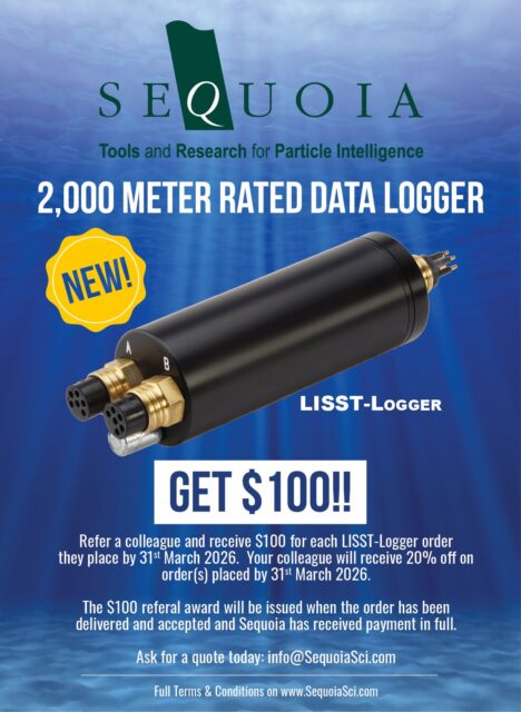 Not only does Sequoia offer 20% off for all LISST-Logger orders placed by 31st March 2026: If YOU refer a colleague to Sequoia and they place a LISST-Logger order by 31st March, you will receive $100 for each LISST-Logger order they place when delivered, accepted, and paid.
